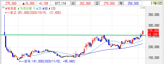 며칠 추세를 보긴 해야겠지만, 258,000원대를 지지 라인으로 삼는다면 당분간 분위기 좋아 보인다.