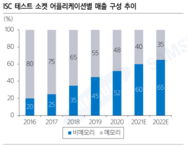 현재 ISC는 포고타입 소켓도 RF용 등으로 대응 중이며, 러버타입도 비메모리 내 응용처가 확대되며 비모메리 비중을 늘려가고 있어서, 향후 비메모리 비중 확대에 따라서 이러한 변동성을 줄이며 안정적 마진 확보할 것으로 판단됨.