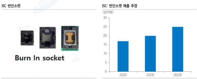 특히, ISC의 번인소켓은 경쟁사와 달리 실리콘 소재로, 기존 핀 형태가 대세였던 번인소켓 시장에 새로운 소재를 바탕으로 진입한 점이 특징.