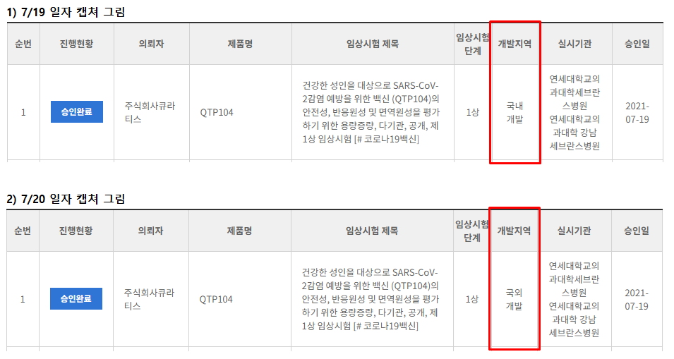 FDA에서 승인이 되었으니 자연스럽게 국내 임상시험 승인도 서류 상의 문제였던 것으로 보인다.