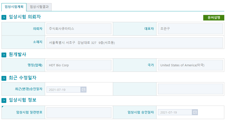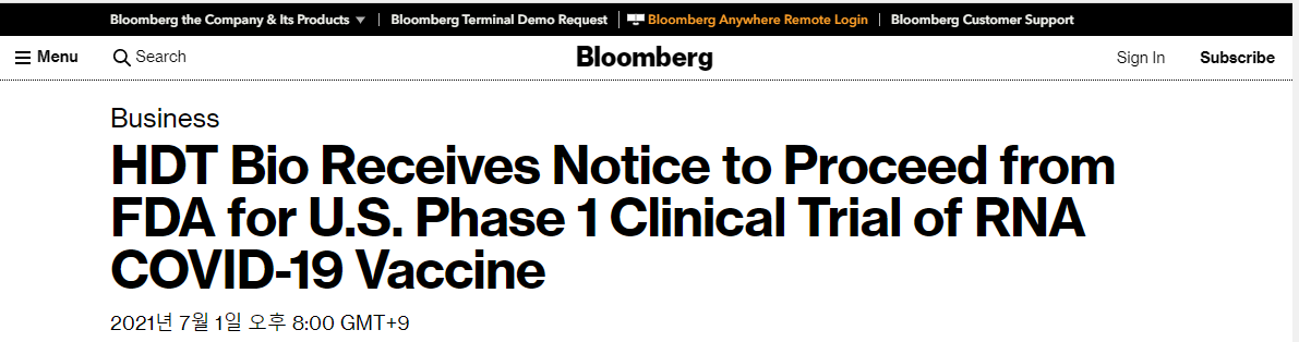 HDT Bio Corp. 기업에 대해서 찾아보니, 7/1일자에 미국 FDA에서 임상 1상 승인을 받은 것을 찾을 수 있었다.