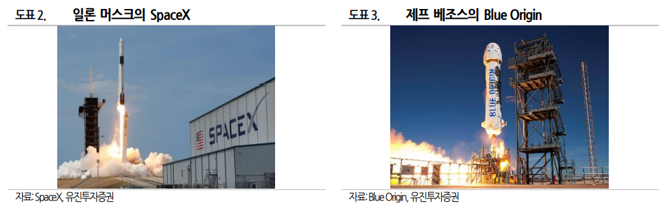 테슬라의 CEO 일론 머스크(Elon Musk)와 아마존의 CEO 제프 베조스(Jeff Bezos)는 스페이스X 와 블루 오리진을 각각 2002년과 2000년에 설립한 뒤, 20 년간 민간 우주발사체 시장에서 경쟁 중이다.