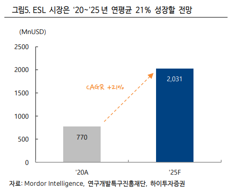 코로나 19 를 기점으로 ESL 시장의 성장 속도가 빨라지면서 이와 관련된 자재 수급도 타이트해지고 있다.