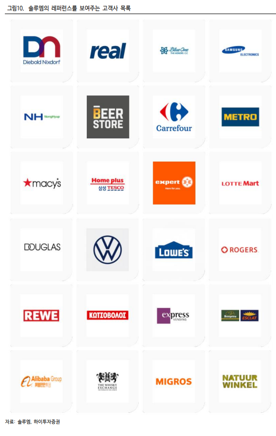 기존 H/W 에서 S/W 사업 모델로 확장될 가능성이 있다. 이미 1 위 업체인 SES-Imagotag 의 경우 ‘20 년 매출의 13%가 구독 모델, S/W 과 관련하여 창출되고 있다. 이는 향후 솔루엠이 나아갈 방향이기도 하며, 잠재적인 Mutliple 상향 요인이 될 수 있다