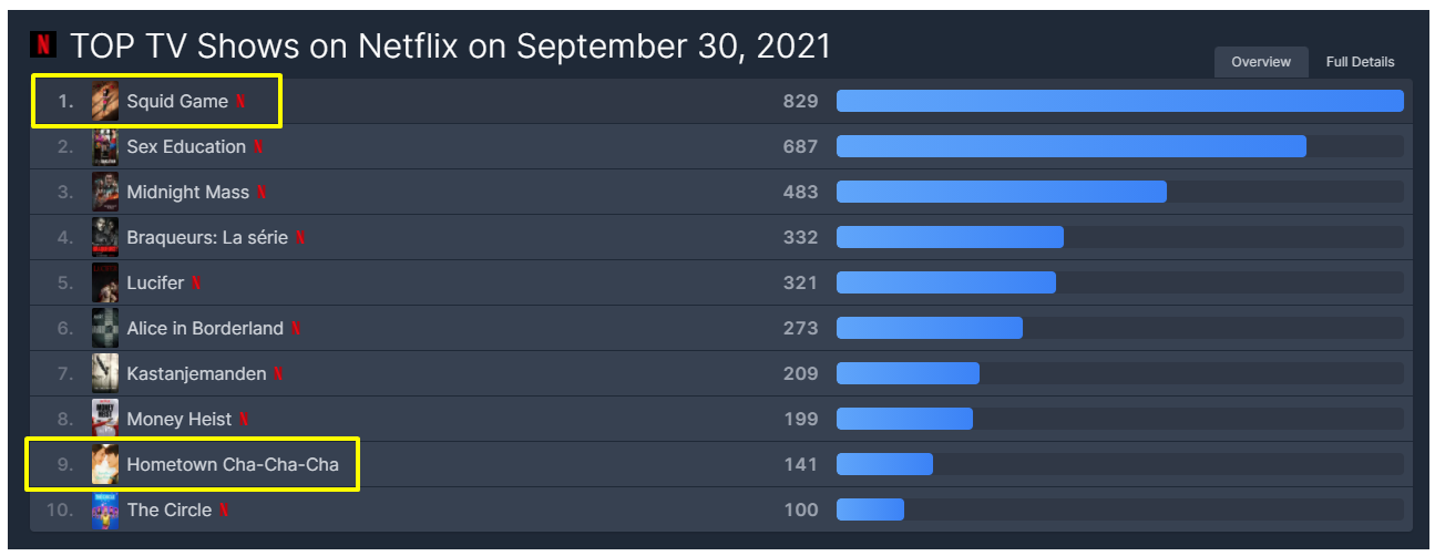 아침에 flixpatrol 사이트를 들어가보니, 넷플릭스 TV 부문 Top #1을 '오징어 게임'이 차지하고 있는 것을 볼 수 있었다.