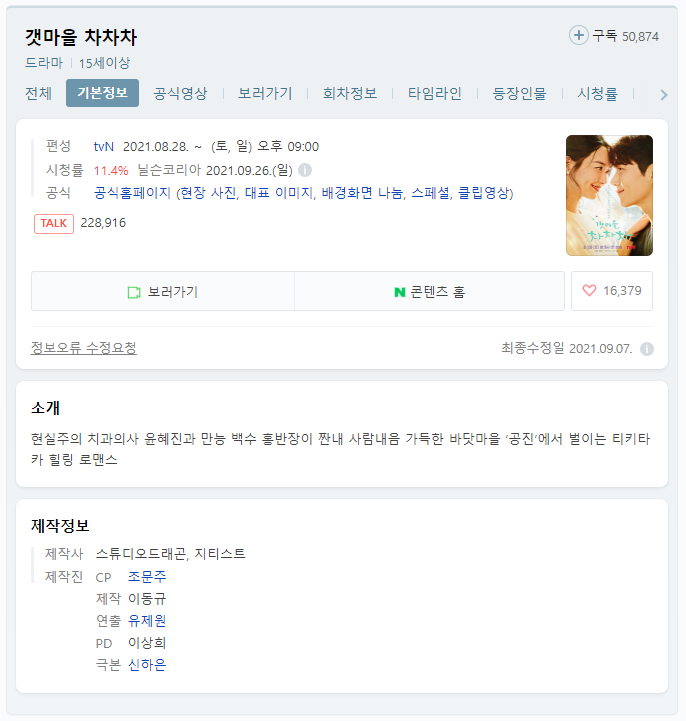 갯마을 차차차를 살펴보니, 제작사는 역시 "스튜디오드래곤".