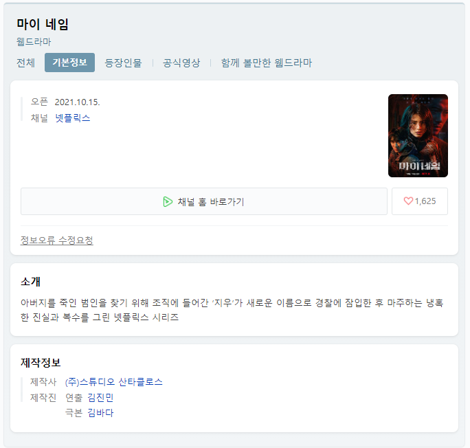 (결과적으로 영화 '무간도'가 언급될 수 밖에 없는데, '마이네임'만의 특징이 눈에 안 들어왔다고 해야 하나)