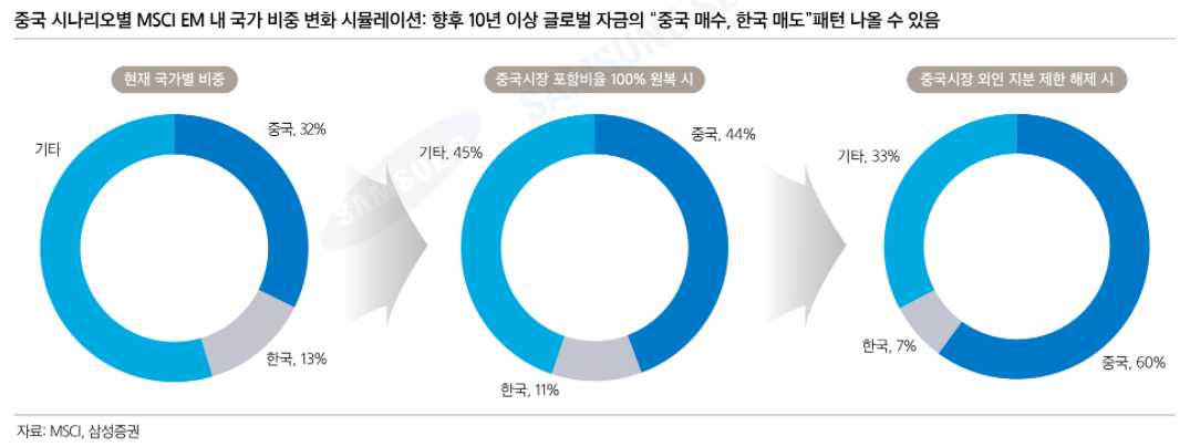 ▶ 현재 MSCI EM 내 한국은, "끓는 물 속의 개구리(boiling frog)" 신세임. 이는 중국의 지속적인 비중 확대 전망 때문임