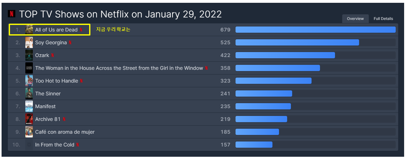 넷플릭스 오리지널 "지금 우리 학교는" 이라는 좀비물 드라마 시즌1이 어제 (12/28/금) 공개되었다.