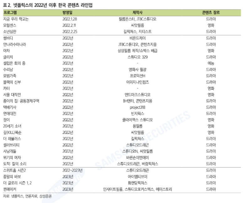 삼성증권에서 최민하 애널리스트의 미디어 산업보고서가 올라와서 내용을 가져왔다.