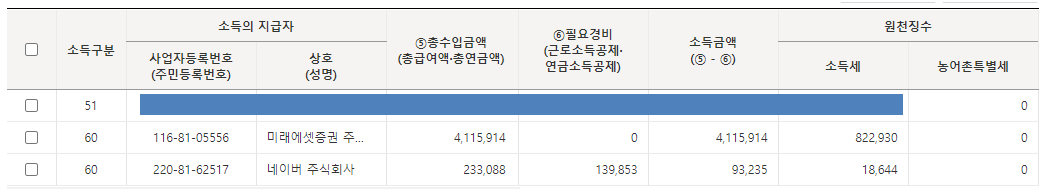 두번째 단계인 소득금액 명세서를 확인해보자.