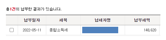 8. 신고서를 제출 후 아래와 같이 신고서가 접수되었다는 확인과, 세금 납부가 가능하다.