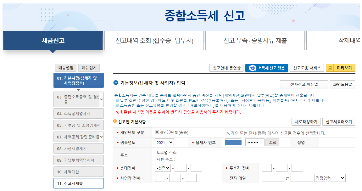 7. 신고서 작성을 마치고, 신고서 제출하기