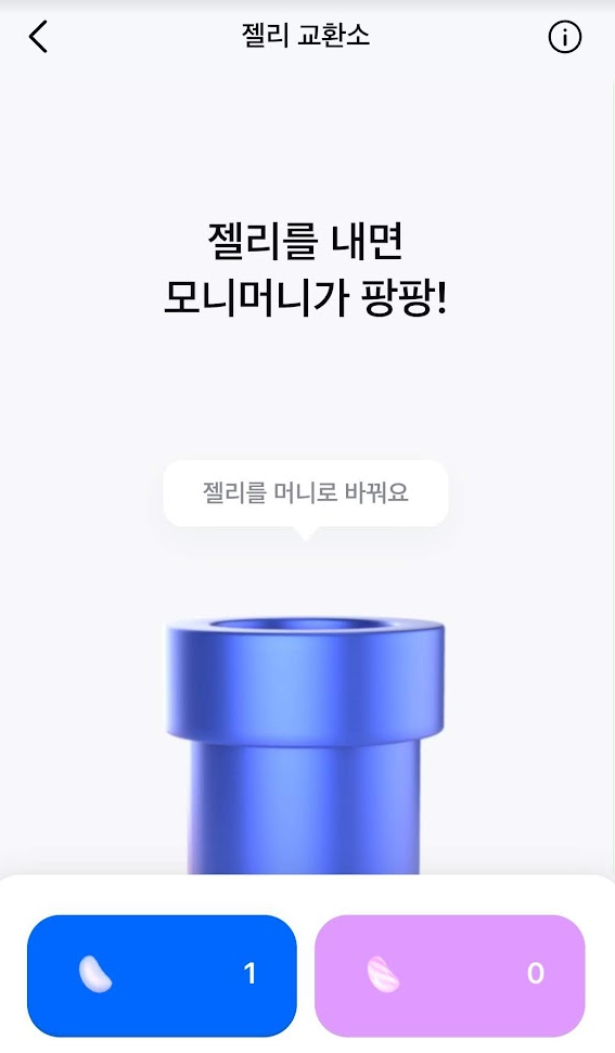 파란색 젤리 1개를 클릭하면, 정말 티끌만큼 머니를 준다.