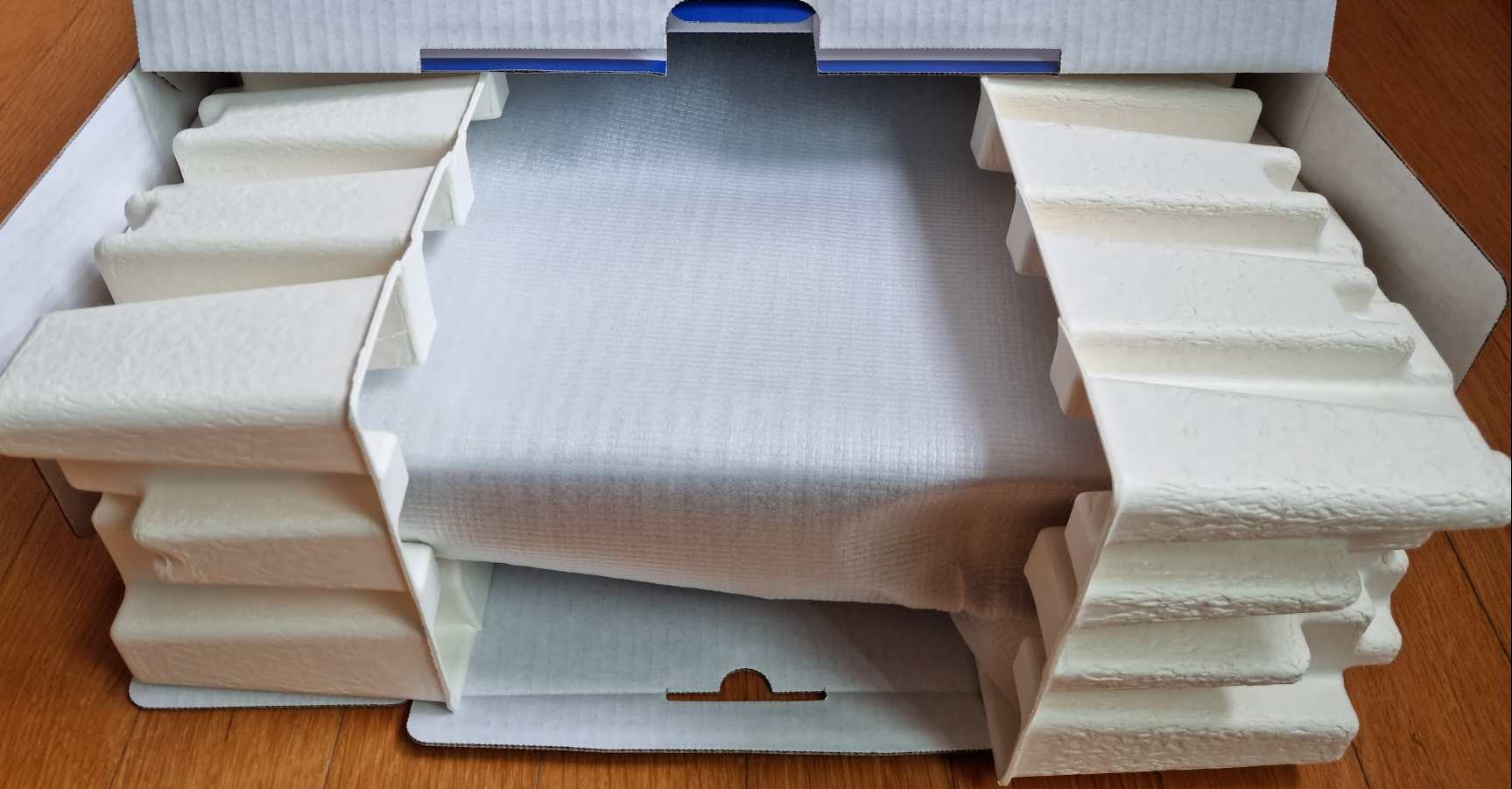 그리고 상단의 납작한 박스를 들어내면, 아래와 같이 PS5 본체가 보인다.