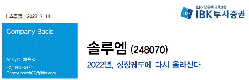 | [기업보고서] 솔루엠 - 고객사/적용처 다변화로 수요 부진 극복 (7/14) (0) | 2022.07.25 |