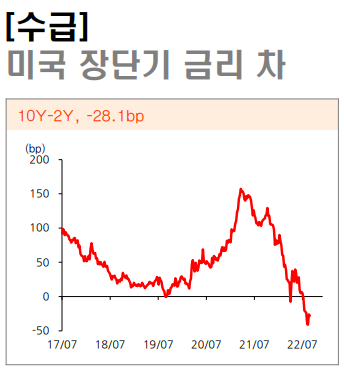 미국 장단기 금리 차이는 -28.1bp 으로, 이 정도 수준에서 유지되지 않을까 싶다.