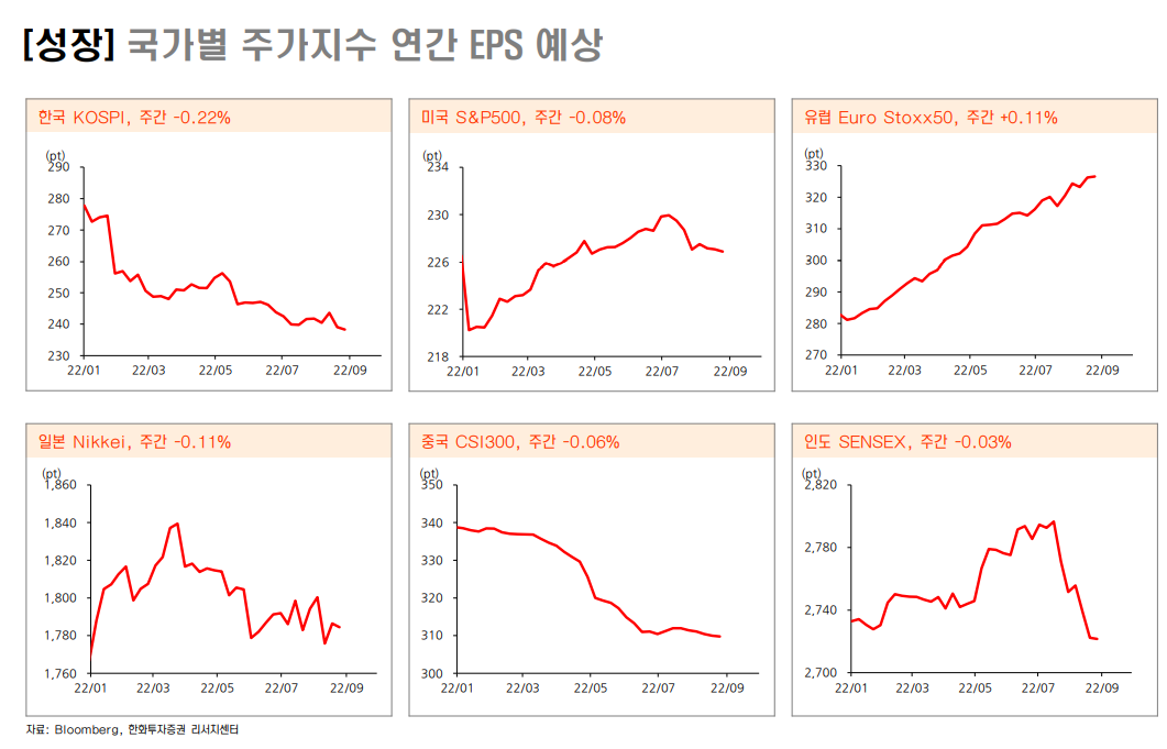 우리나라 연간 EPS 예상치는 계속 빠지고 있다.