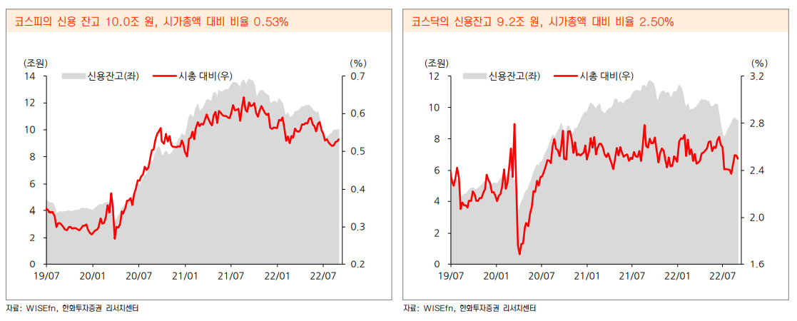 신용잔고는 19조 규모 (KOSPI 10조 / KOSDAQ 9.2조)