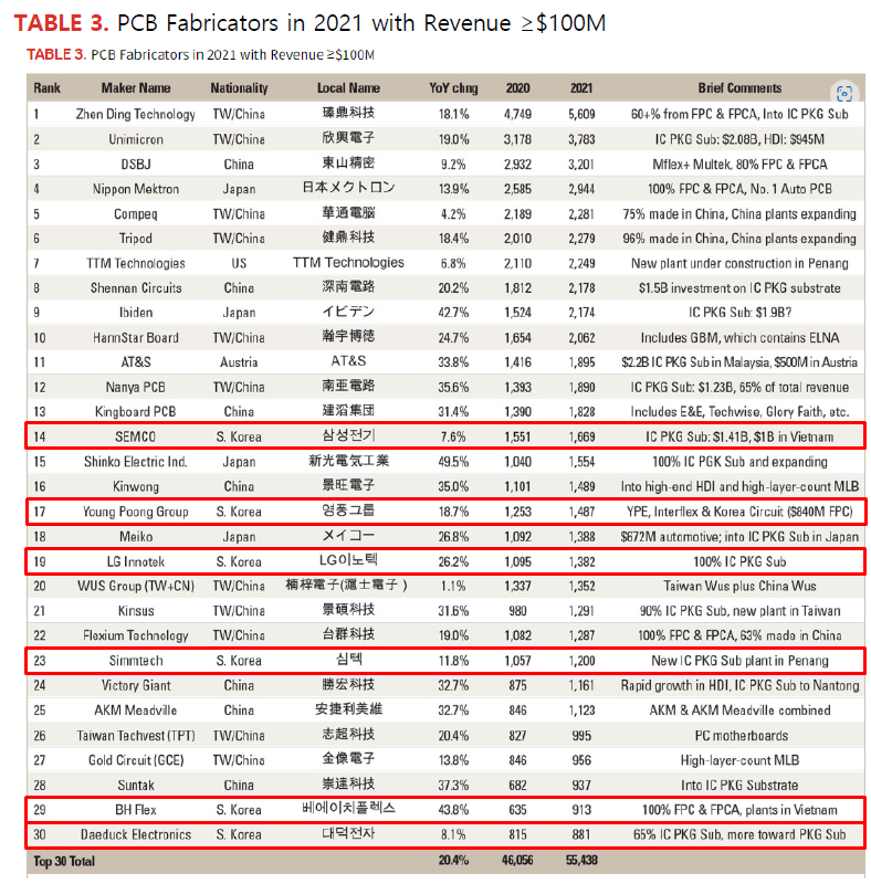 지난해 전세계 PCB 업체 매출 순위에 대한 기사가 올라와서 내용을 가져왔다.