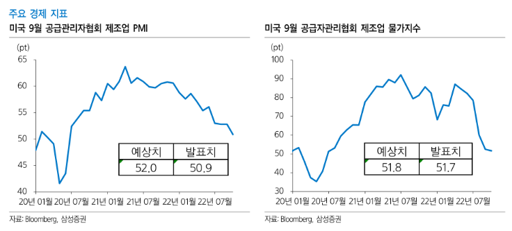 2) ISM 제조업 PMI, 시장 예상보다 부진하며 금리 하락에 일조.