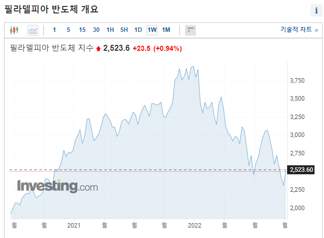 인텍플러스 주식을 갖고 있으면서, 반도체 업종은 필라델피아 반도체 지수를 잘 살펴보아야 된다는 것을 뼈저리게 느꼈다.