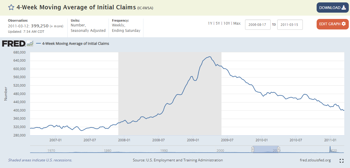 주식 풀매수 타이밍을 잡기 위한 주요 체크 포인트로 미국 신규 실업수당 청구건수를 참고할만하다는 것을 배웠다.