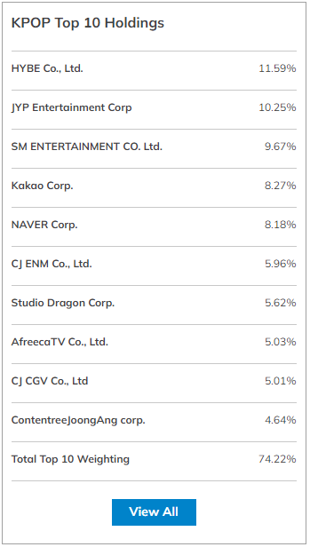 정식 명칭은 ‘KPOP AND KOREAN ENTERTAINMENT ETF’, 티커 종목명은 ’KPOP’이다.