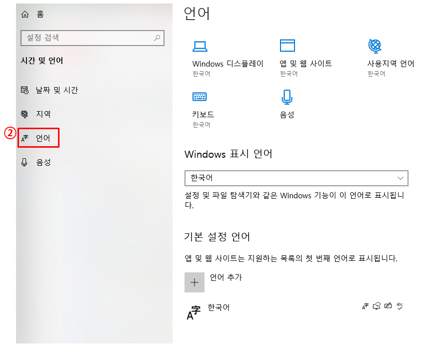 2. 아래 그림과 같이 "언어"를 클릭한다.